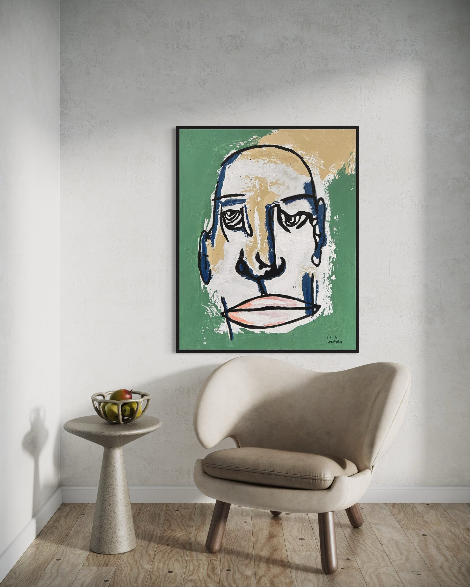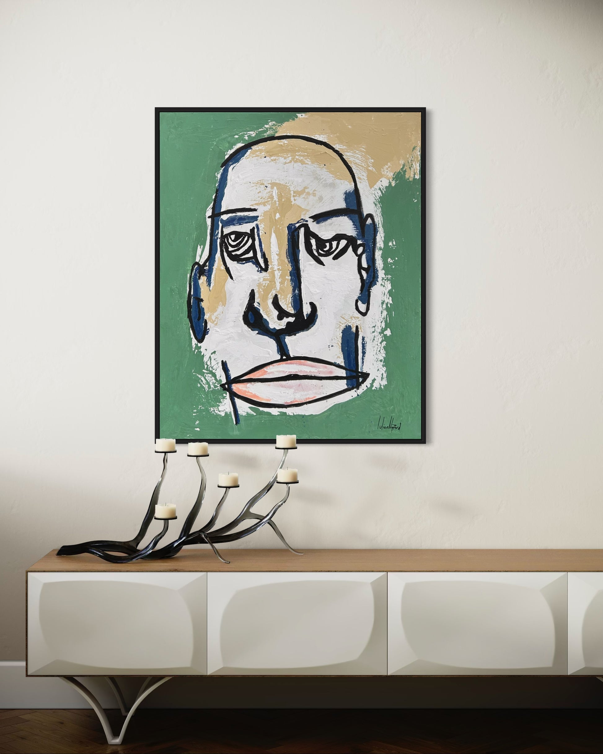 Akryl, sparkel, spraymaling og pastell på lerret